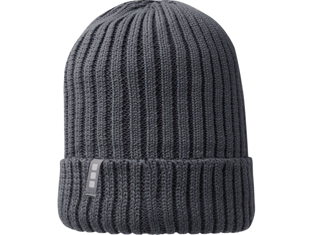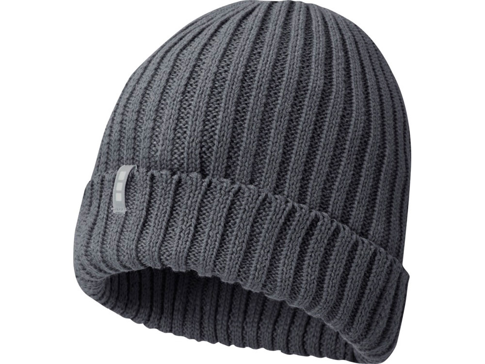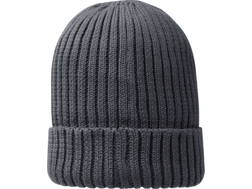 Экологически безопасный рекламный головной убор. Однослойная шапка с двойным отворотом связана рибом 2х2 7 класса из 100% органического хлопка. Фирменная этикетка в виде петли.