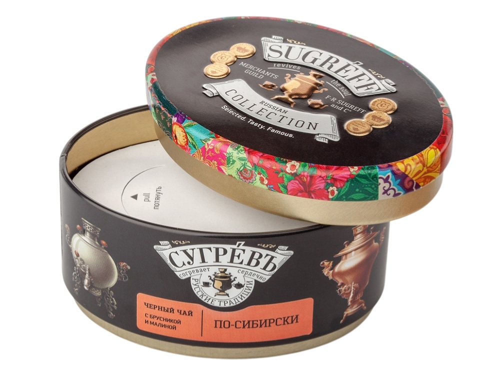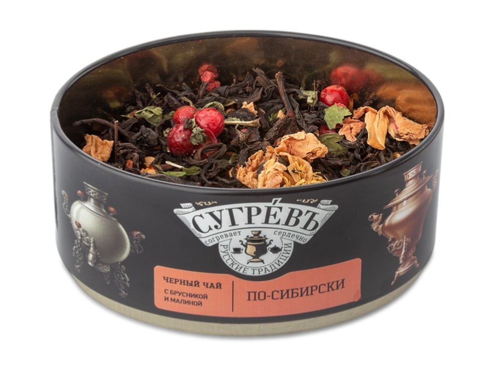 Ж/б По-сибирски + монпансье малиновые. Чёрный чай с травами. купить оптом и в розницу с нанесением логотипа в Нижнем Новгороде
