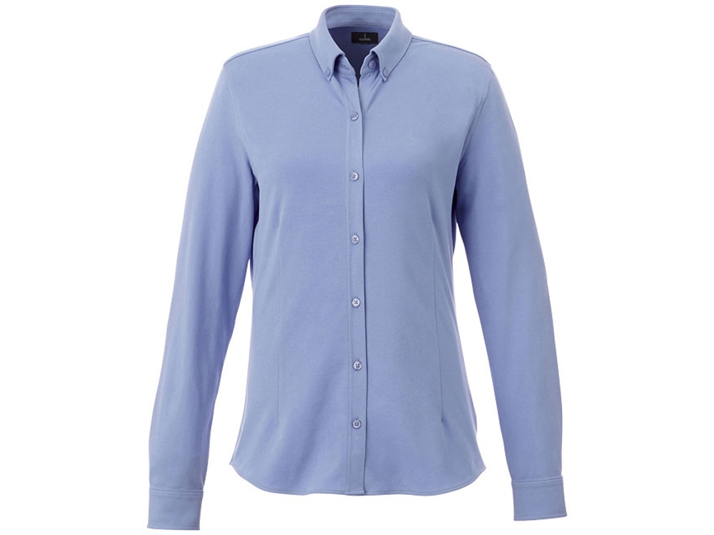 Женская рубашка Bigelow из пике с длинным рукавом. Воротник из ткани изделия. Стрейтч-ткань. Регулируемый манжет на одной пуговице. Воротник на пуговицах. Швы моделирующие фигуру и приталенный крой. Атласная окантовка внутренней части горловины. Гравированные пуговицы в цвет изделия. Тканая метка. Двойное трикотажное пике, 95% хлопок и 5% эластан. 200 г/м².