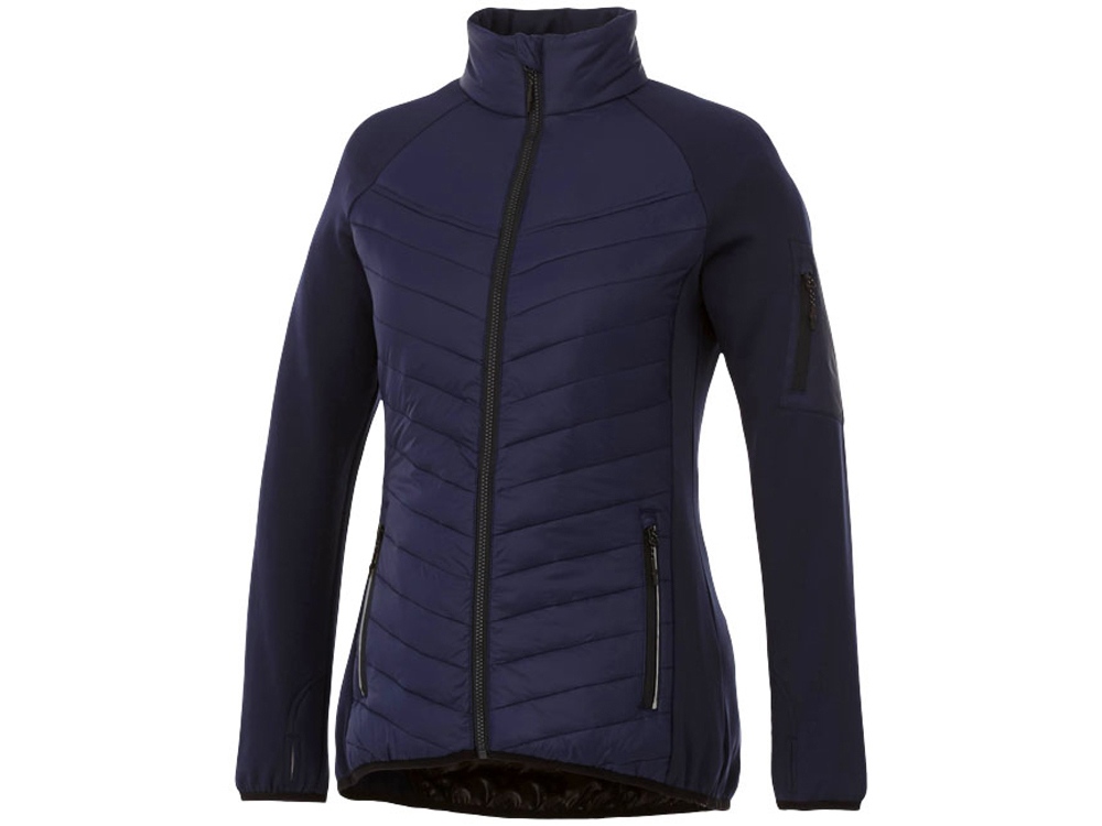 Женская утепленная куртка Banff. Внутренний противоветровой клапан и защита подбородка. Внутренний выход для медиапроводов. Удлиненная задняя часть изделия. Швы моделирующие фигуру и приталенный крой (женская модель).Манжеты-резинки контрастного цвета. Отделка контрастной тканью. Молния с контрастной лентой. Молния легкого скольжения. Петелька-вешалка. Комфортный ярлык-трансфер на изделии. 100% нейлоновая тканая матовая отделка 380T, водоотталкивающая и пухонепроницаемая ткань. Контрастная ткань: 94% полиэстер, 6% эластан с водоотталкивающей поверхностью. 38 г/м².