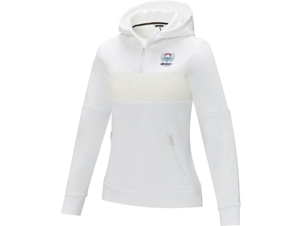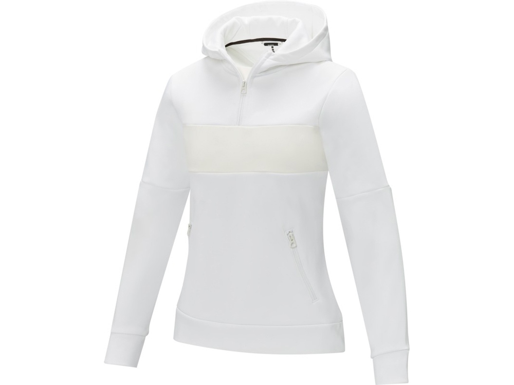 Женский свитер анорак Sayan на молнии на половину длины с капюшоном, белый купить оптом и в розницу с нанесением логотипа в Нижнем Новгороде