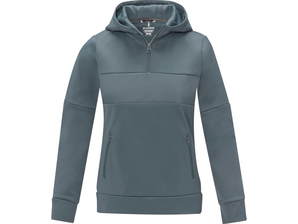 Женский свитер анорак Sayan на молнии на половину длины с капюшоном, steel grey купить оптом и в розницу с нанесением логотипа в Нижнем Новгороде