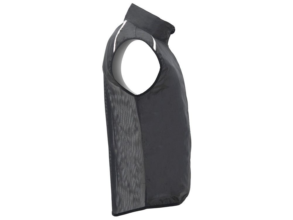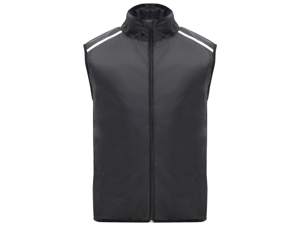 Легкий технический жилет для занятий бегом. - Молния спереди в тон с защитой для подбородка. - Проймы и низ с эластичной окантовкой. - Нижняя часть спины из микроперфорированной ткани. - Светоотражающие детали сверху, спереди и сзади. - Карман на резинке для хранения жилета и ношения на запястье.