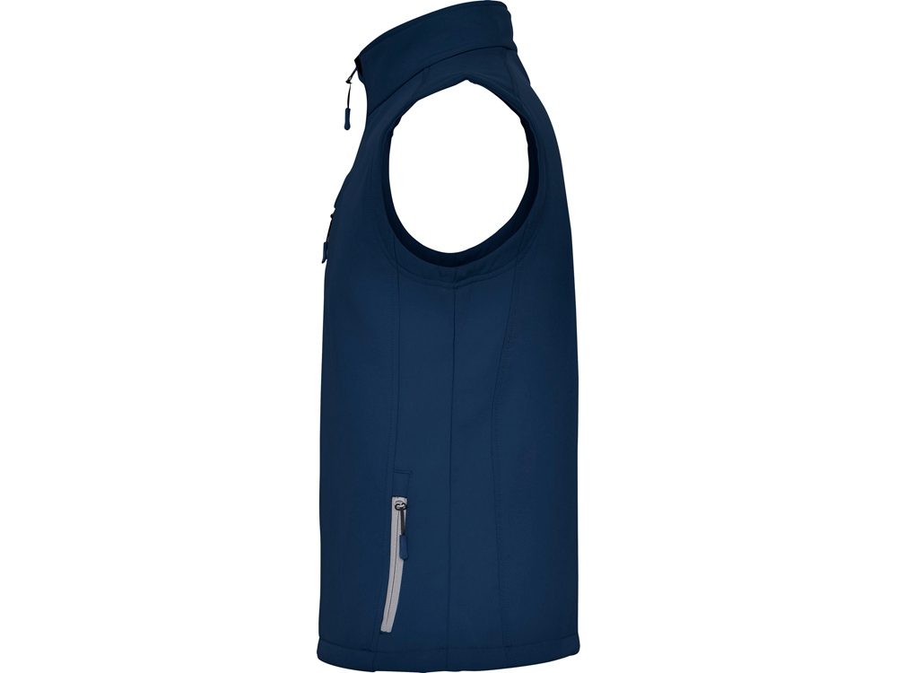 Жилет из 2-х слойного софтшелл материала. - Контрастная водоотталкивающая молния с защитой для подбородка. - Три внешних кармана на молнии с бегунком в тон. - Низ с эластичным шнуром и регуляторами.