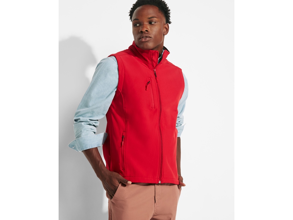 Двухслойный жилет софтшелл. - Центральная молния в тон с защитой для подбородка. - Нагрудный карман с правой стороны с молнией в тон. - Два внешних кармана на молнии в тон. - Низ с эластичным шнуром и фиксаторами.