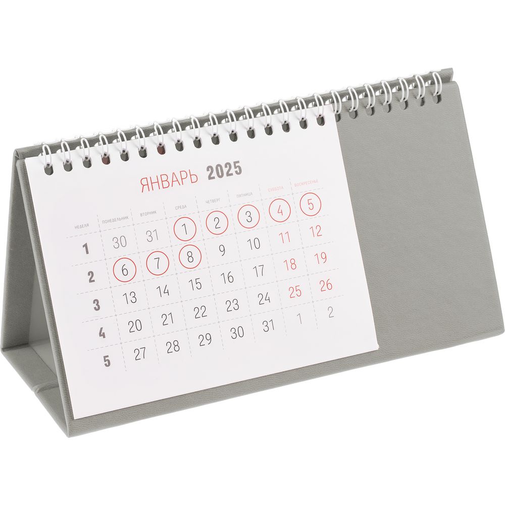 Настольный, перекидной календарь-«домик» выполнен из материала Latte, серый СС.