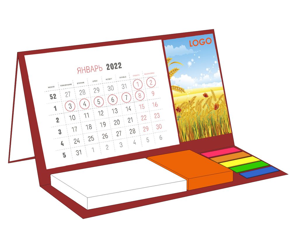 • Календарь 14,5х8,5 см, 12 листов (2 цвета, стандартный дизайн).