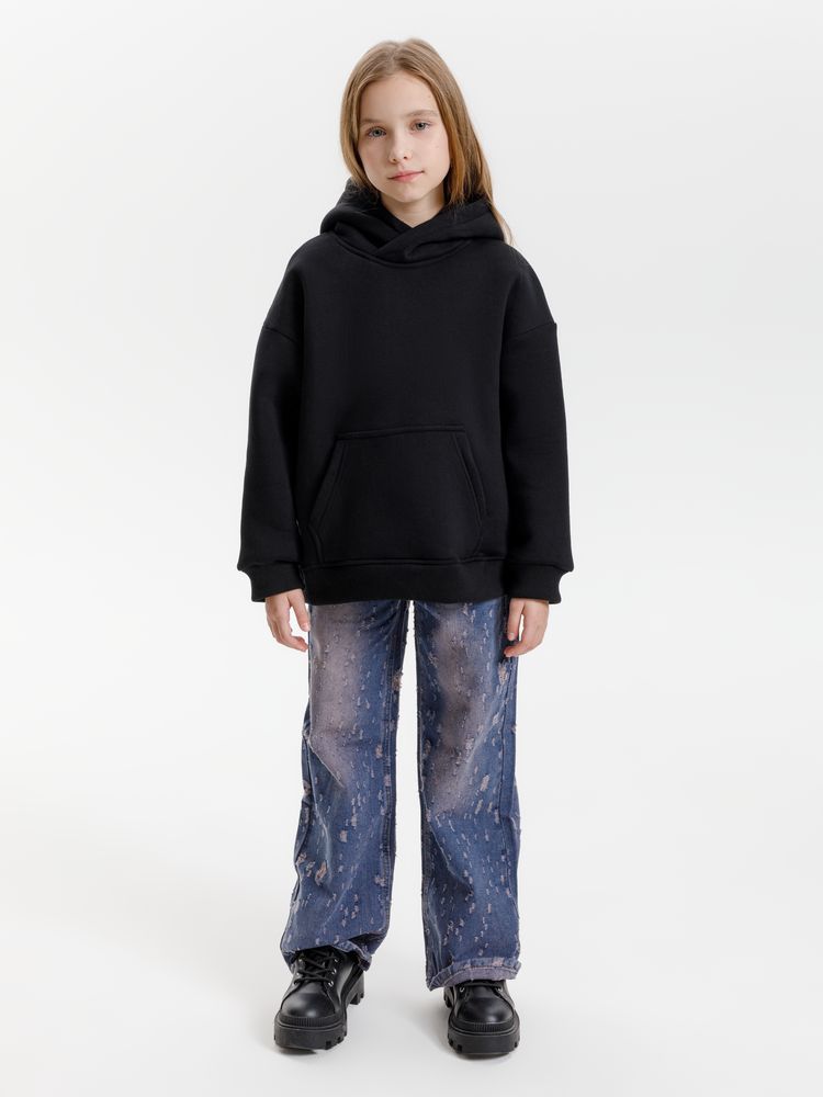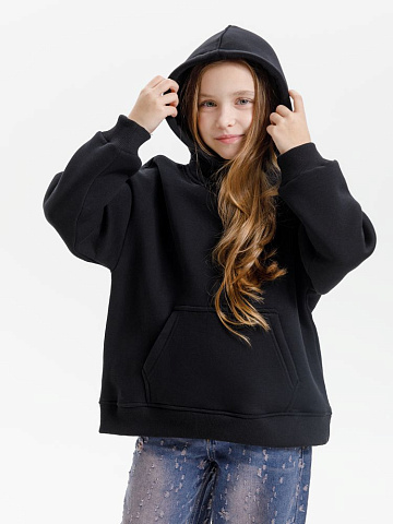 Худи детское оверсайз Junipero, черное купить оптом и в розницу с нанесением логотипа в Нижнем Новгороде