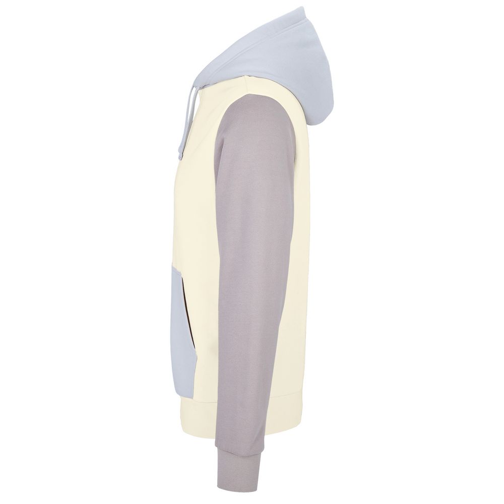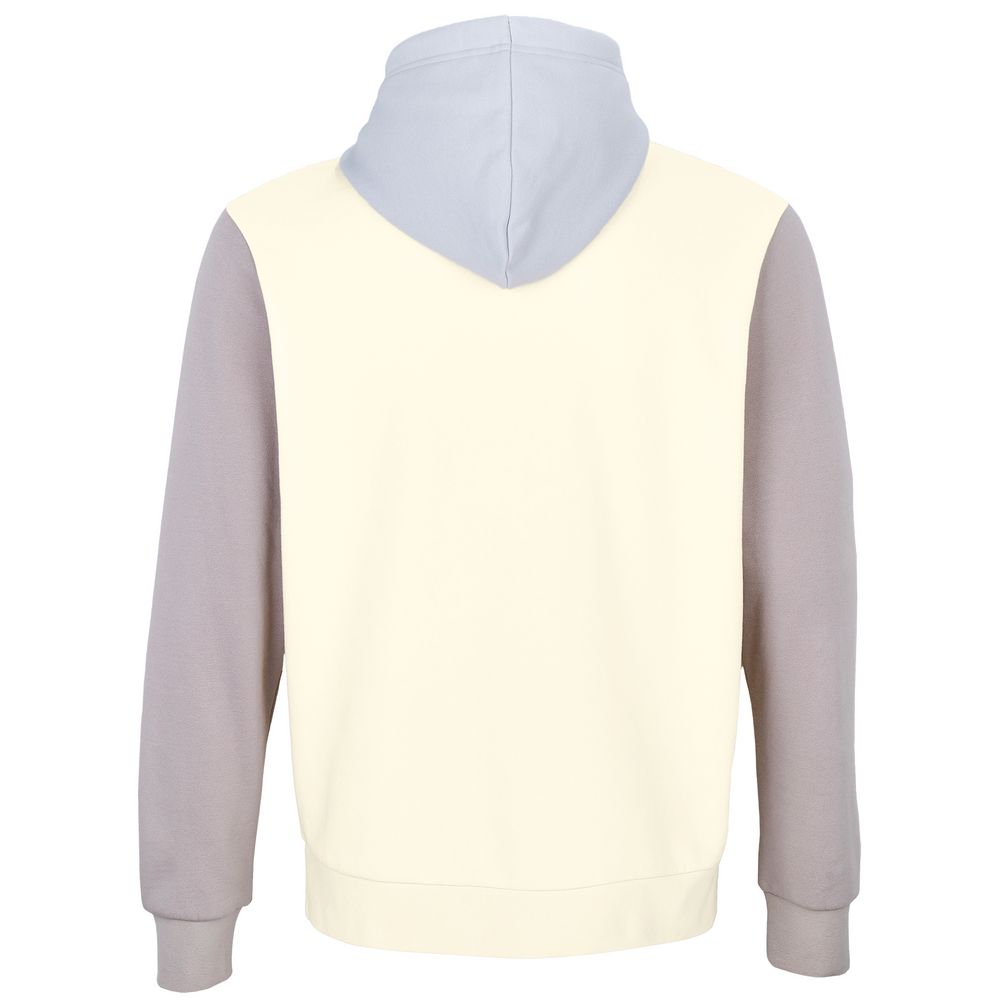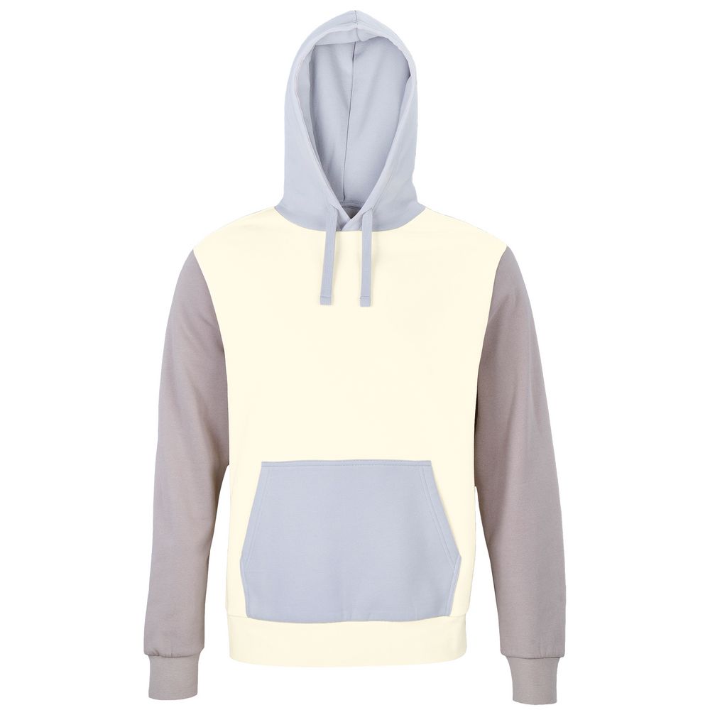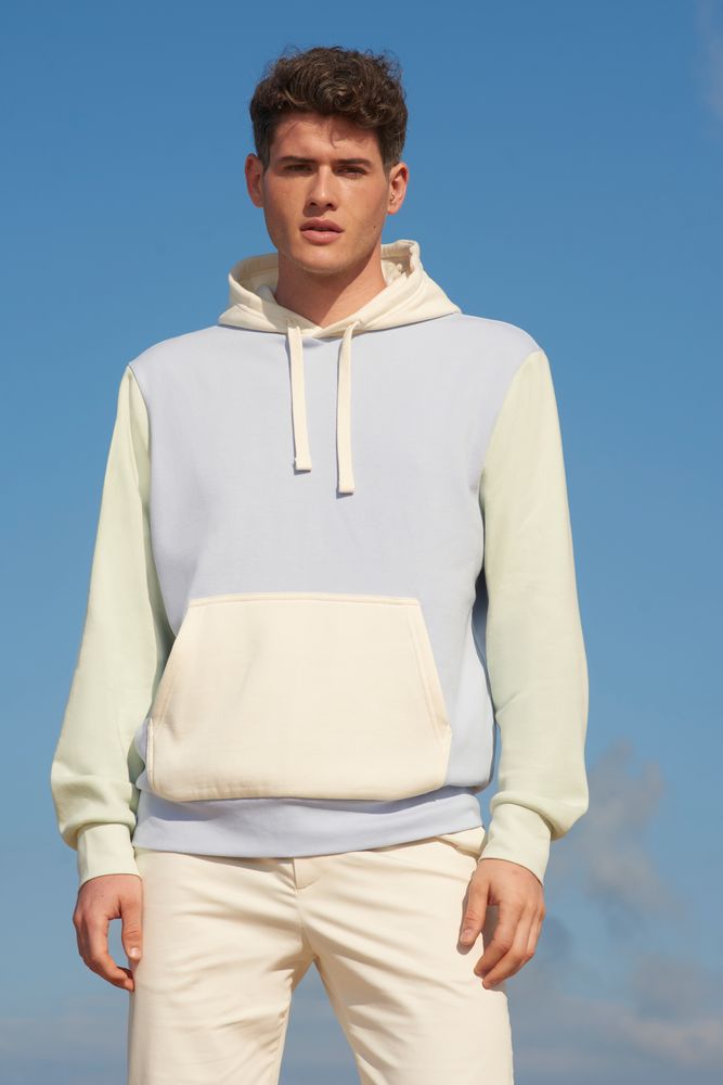 Трехцветное утепленное худи унисекс из органического хлопка и переработанного полиэстера. Удобный накладной карман-кенгуру. Края рукава и низ изделия выполнены резинкой. Внутренняя сторона с начесом.