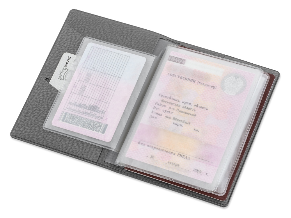 Обложка (портмоне) для документов - это необходимая вещь для любого автовладельца. Качественная обложка сохранит документы в целости, защищая их от изломов, пыли и грязи. Данная обложка из искусственной кожи станет стильным и функциональным аксессуаром. Внутренние вкладыши выполнены из пленки пвх и позволяют разместить: паспорт, свидетельство о регистрации тс, полис осаго, водительское удостоверение, также имеется кармашек для пластиковой карты.