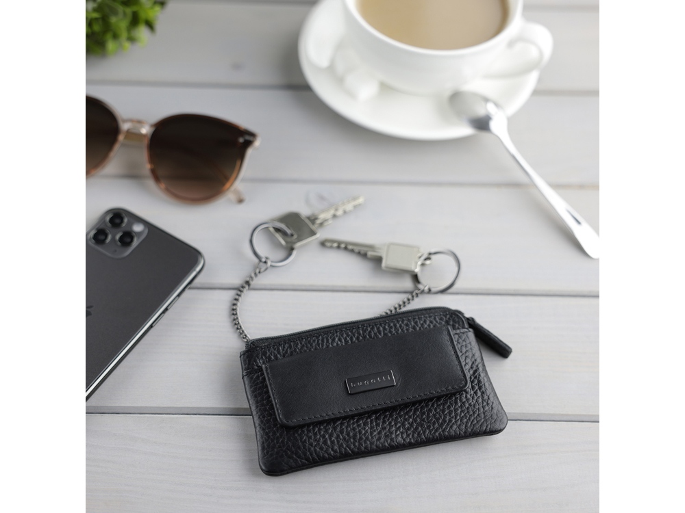 КЛЮЧНИЦА SINA Кошельки и ключницы из коллекции SINA искусно совмещают в себе самые разнообразные контрасты. Комбинация темных и светлых оттенков соединяется с продуманным выбором материалов. Зернистая воловья кожа и подкладка из гладкого полиэстера создают гармоничное сочетание стиля и практичности. С коллекцией SINA никогда не будет скучно. Выбери свой любимый цвет. СВОЙСТВА Функциональная организация: основное отделение на молнии, 2 кольца на цепочке для ключей, передний карман на кнопке, задний карман на молнии. Материал: воловья кожа / полиэстер Размер: 13 x 1,5 x 7 см Вес: 0,06 кг