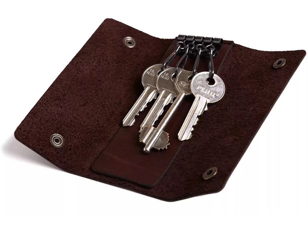 В Москве любят запирать двери. Двери подъездов и квартир, двери автомобилей и офисов – одним словом, любому среднестатистическому человеку приходится постоянно носить с собой несколько ключей. По старинной советской традиции, такие ключи принято нацеплять на одно огромное кольцо, и привешивать к нему яркий брелок. Сказать, что это выглядит старомодно – ничего не сказать. Ключи постоянно цепляются друг за друга, застревают в карманах, царапают телефон, рвут подкладку сумок, рюкзаков и портфелей. Выходом из такой весьма мрачной ситуации может служить обыкновенная кожаная ключница Long River. Мы используем эпитет обыкновенная как достоинство – такие аксессуары и должны быть обычными, простыми и надежными. В них не должно быть встроенных отделений для купюр, карточек и прочего барахла. - 4 карабина для ключей