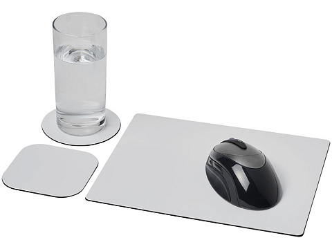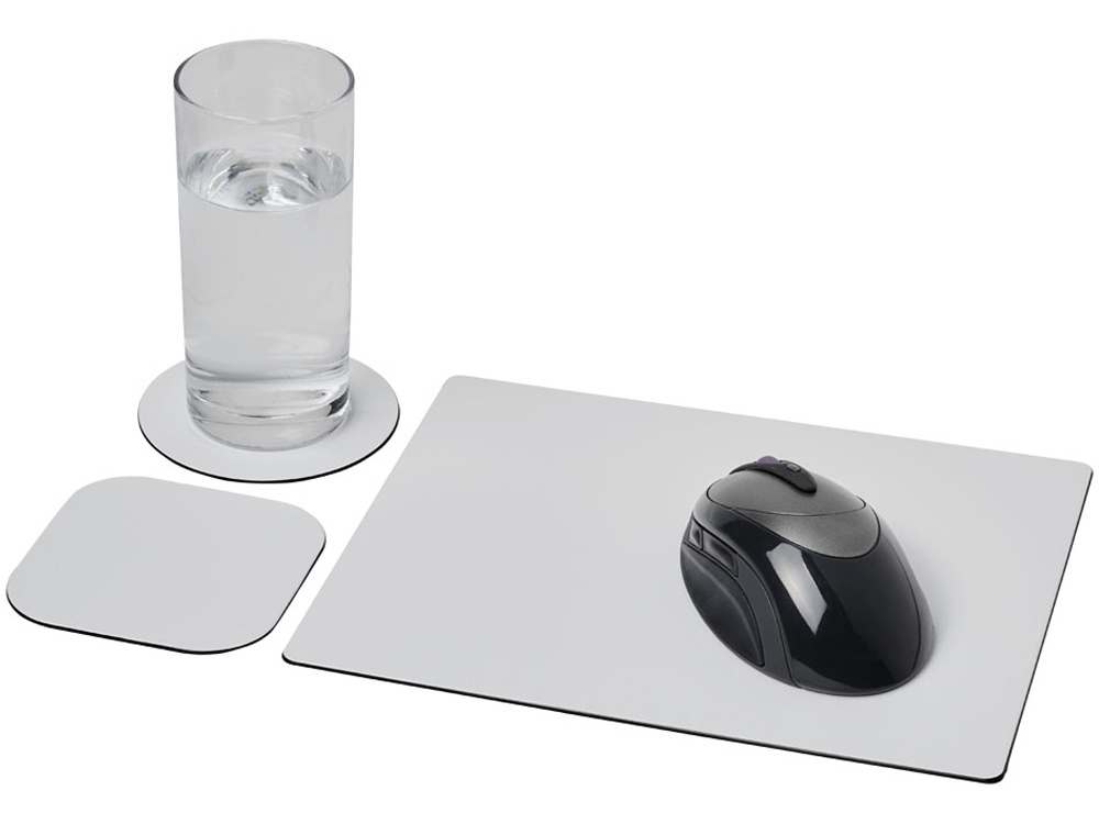 Комплект Brite-Mat® из коврика для мыши и подставки 1. Поставляется с ковриком для мыши Brite-Mat и набором соответствующих подставок. Набор состоит из прямоугольного коврика для мыши (0,3 x 19 x 21 см), квадратной подставки (0,3 х 9,5 х 9,5 см) и круглой подставки (0,3 x ø9,5 см). Ламинированная бумага и переработанная пластмасса.