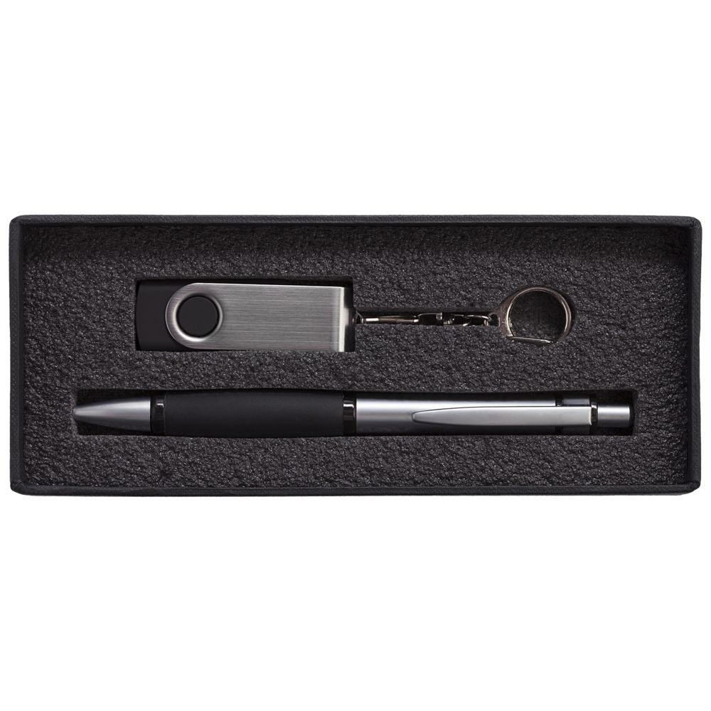 Коробка Notes с ложементом для ручки и флешки, черная купить оптом и в розницу с нанесением логотипа в Нижнем Новгороде