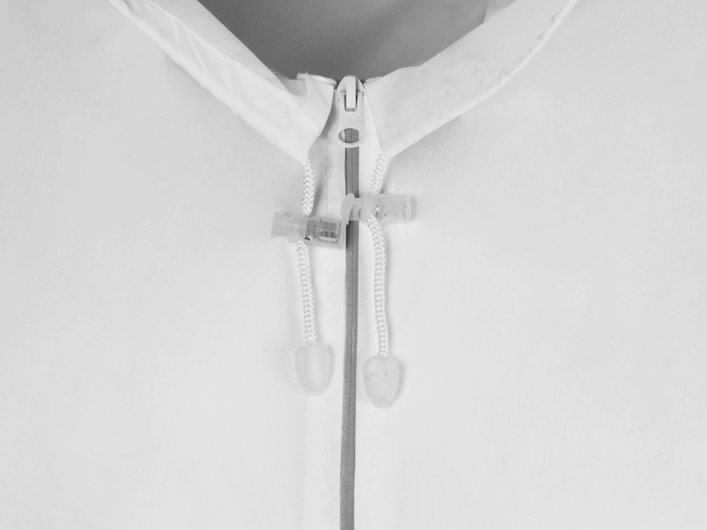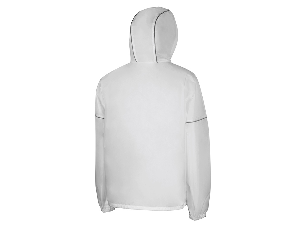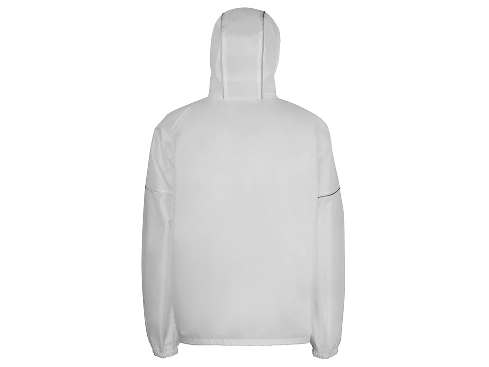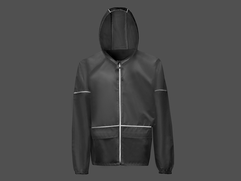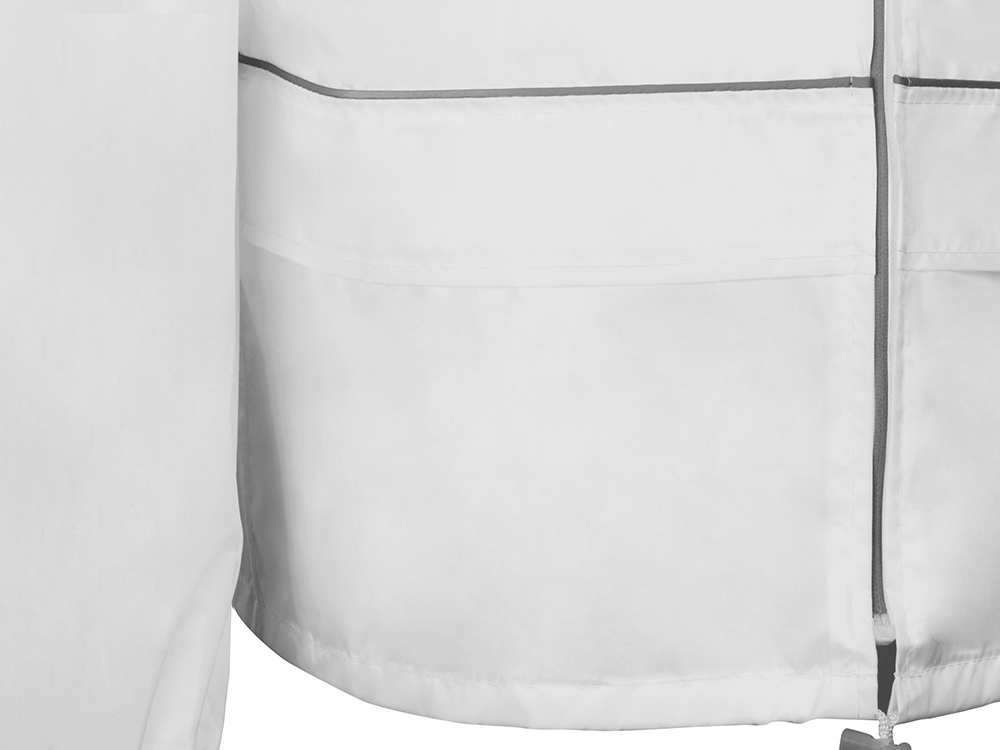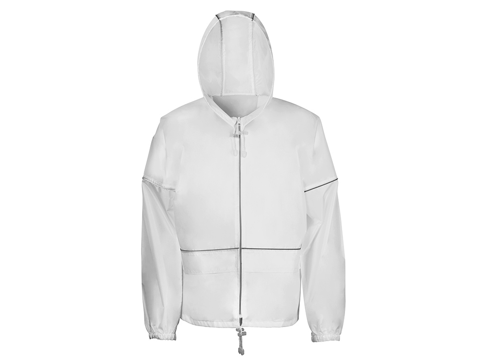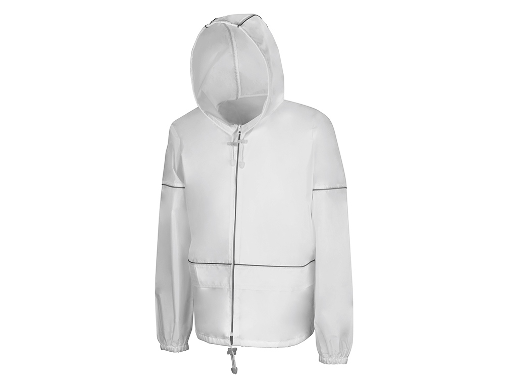 Короткий дождевик прямого силуэта с капюшоном и карманами. Вместительные накладные карманы защищены сверху клапанами, по верхней кромке которых вшит светоотражающий кант. Светоотражающие элементы также расположены на рукавах, капюшоне и молнии, что делает человека заметным даже в темное время суток. Капюшон и низ дождевика затягиваются на шнурки с фиксаторами, что позволяет отрегулировать посадку по фигуре. Манжеты дождевика — на резинке. Поставляется в чехле-мешочке на шнурке для компактного хранения.
