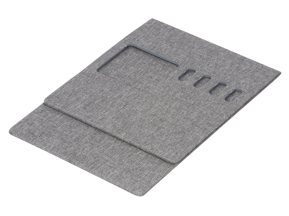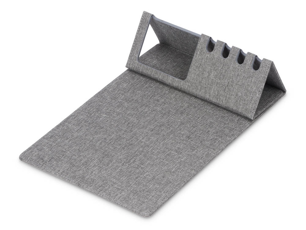 Коврик для мыши Formo выполнен из переработанных материалов. В случае загрязнения его легко очистить влажной салфеткой. Противоскользящий слой препятствует перемещению аксессуара по столу в процессе работы, а складная подставка под ручки и смартфоны поможет держать все необходимое под рукой.
