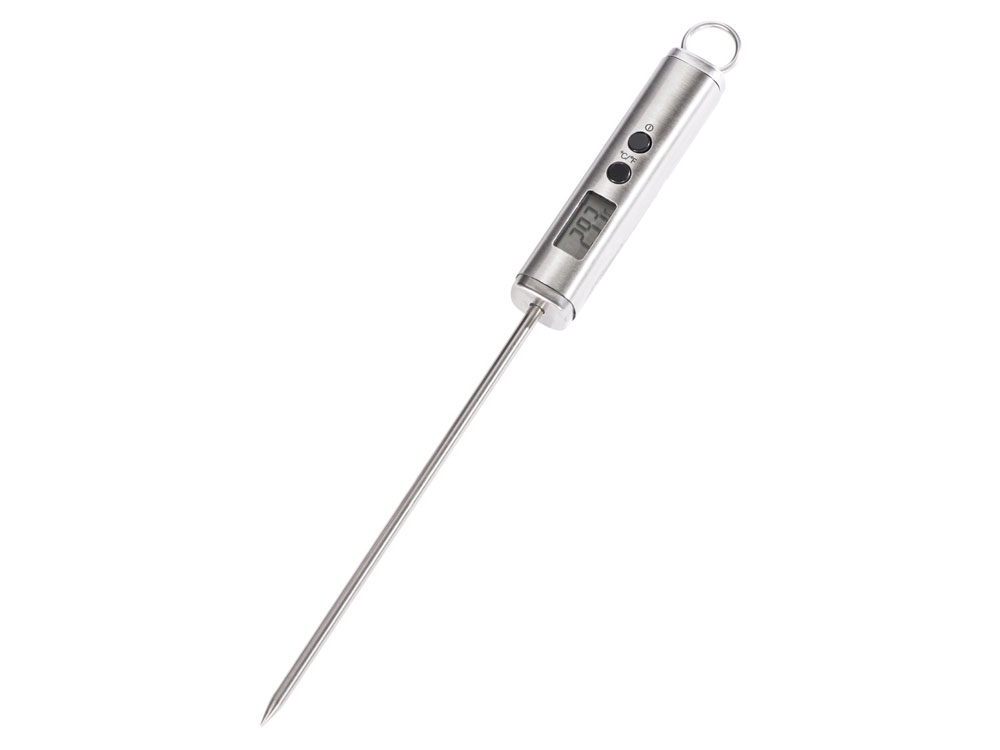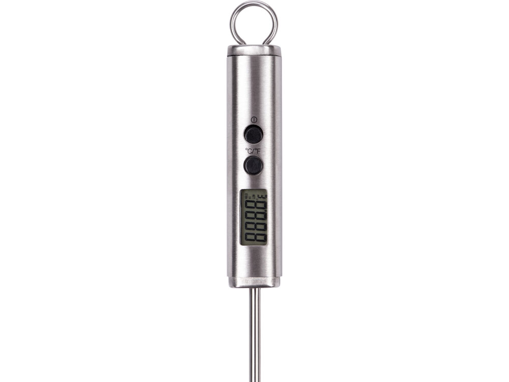 Steak — кулинарный термометр, который не даст вам ошибиться во время готовки! С ним все блюда будут поданы в нужной кондиции, а стейки — прожарены ровно настолько, насколько вам нужно — просто воткните острие термометра в пищу, и на электронном табло появится температура. - нержавеющая сталь - температура использования: от -50 до +300℃ - работает от батарейки LR44 (в комплекте) - ручка для подвешивания