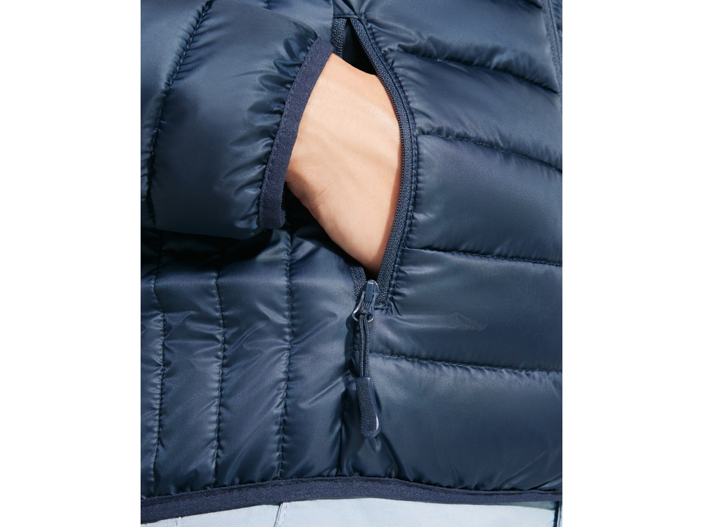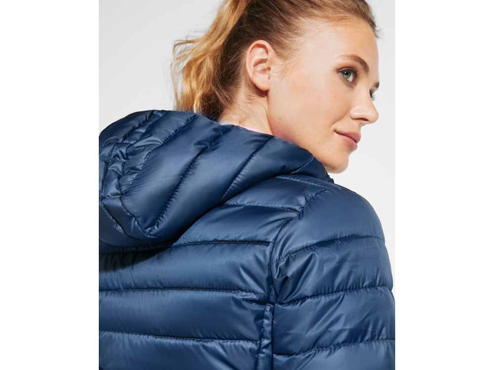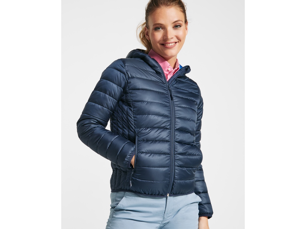 Женская стеганая куртка с несъемным капюшоном. - Молнии в тон с защитой для подбородка. - Два карманы на полочке на молнии. - Манжеты, низ и край капюшона с эластичной окантовкой в тон. - Контрастная подкладка. - В комплекте: мешочек для хранения. - Легкая и компактная куртка приталенного силуэта.