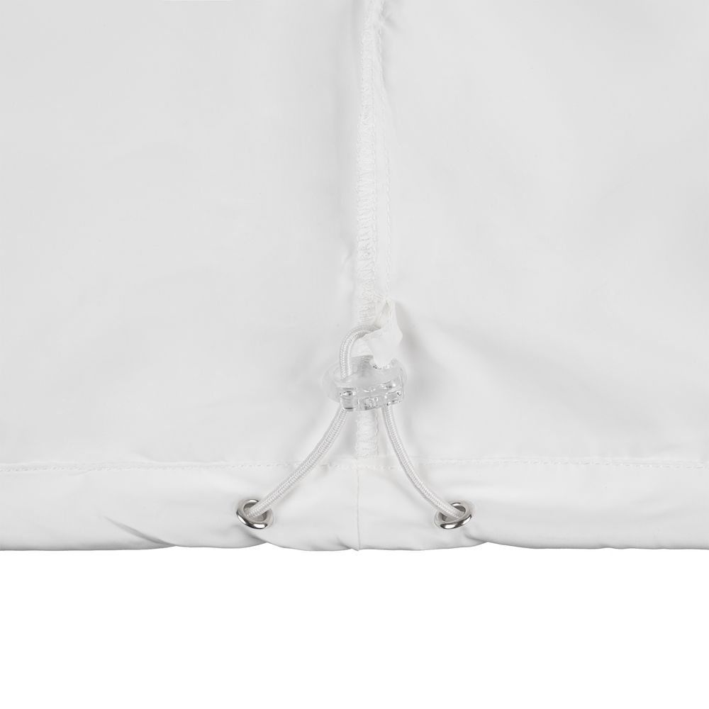 • Кулиска с эластичной резинкой по краю капюшона, по низу изделия и по горловине воротника изделия