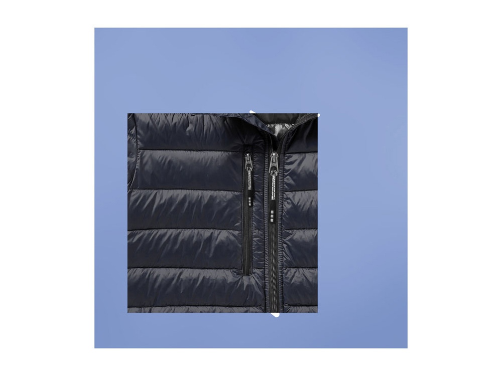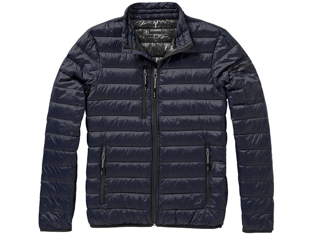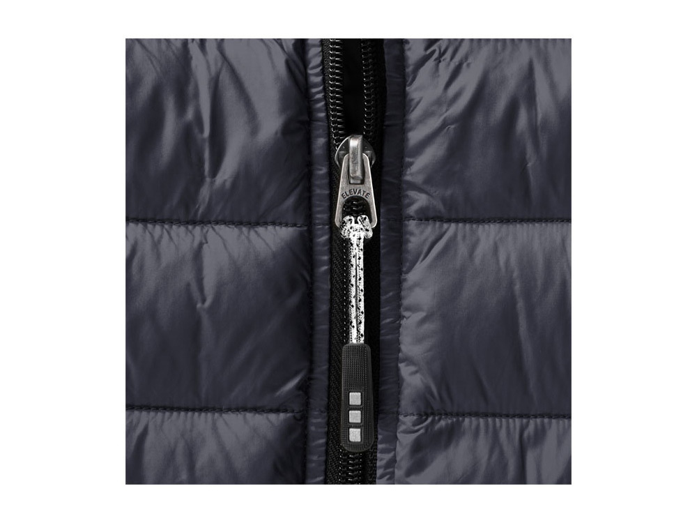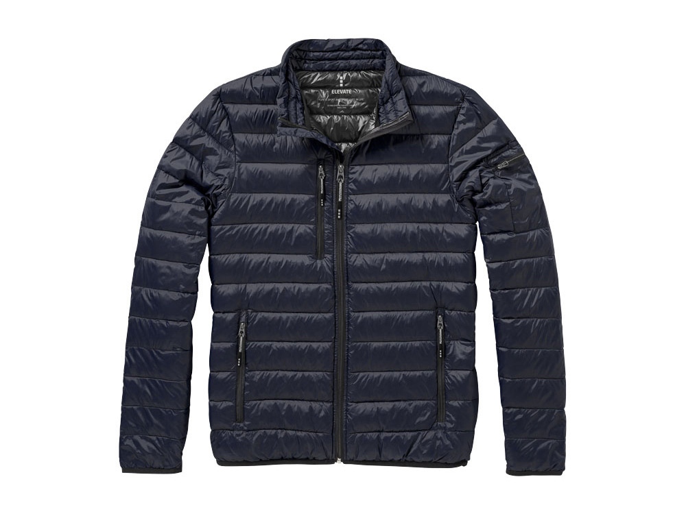 Легкая куртка Scotia. Стандартный покрой. Ткань не пропускает пух. Карманы для рук и нагрудный на молнии. Карман на рукаве на молнии можно использовать для нанесения. Резинка на манжетах и внизу куртки. Ремешки на собачку (второй комплект в цвете антрацит). Внутренний противоветровой клапан и защита подбородка. Ткань дышащая, ветронепроницаемая и влагоотталкивающая. Отражающий лого сзади. Легкий пуховик. Ткань из 100% нейлона с матовым и блестящим водоотталкивающим покрытием, 20D. 80% пух и 20% перо. 115 г/м².