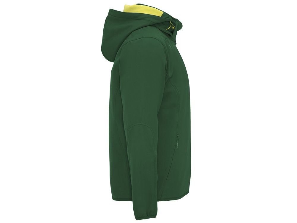 Куртка софтшелл спортивного кроя из технологичного материала * контрастная центральная молния с ветрозащитной внутренней планкой * подкладка из контрастного ультра-теплого микрофлиса * прорезной кармана на груди по диагонали справа застёгивается на потайную молнию * два боковых кармана застегиваются на потайную молнию * дополнительный карман на левом рукаве * отделка резинкой в тон по низу рукавов и изделия * капюшон складывается в воротник * технологичное полотно: водонепроницаемое, с ветрозащитой.