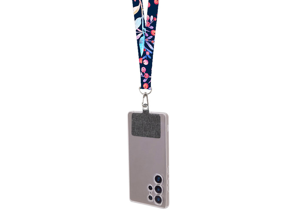 Трендовый и функциональный аксессуар - лента с держателем для телефона. Благодаря ей можно носить телефон через плечо или просто на шее. Лента предназначена для нанесения вашего дизайна методом сублимации. Особенностью данного типа нанесения является очень яркий и точный перенос даже мелких элементов дизайна.