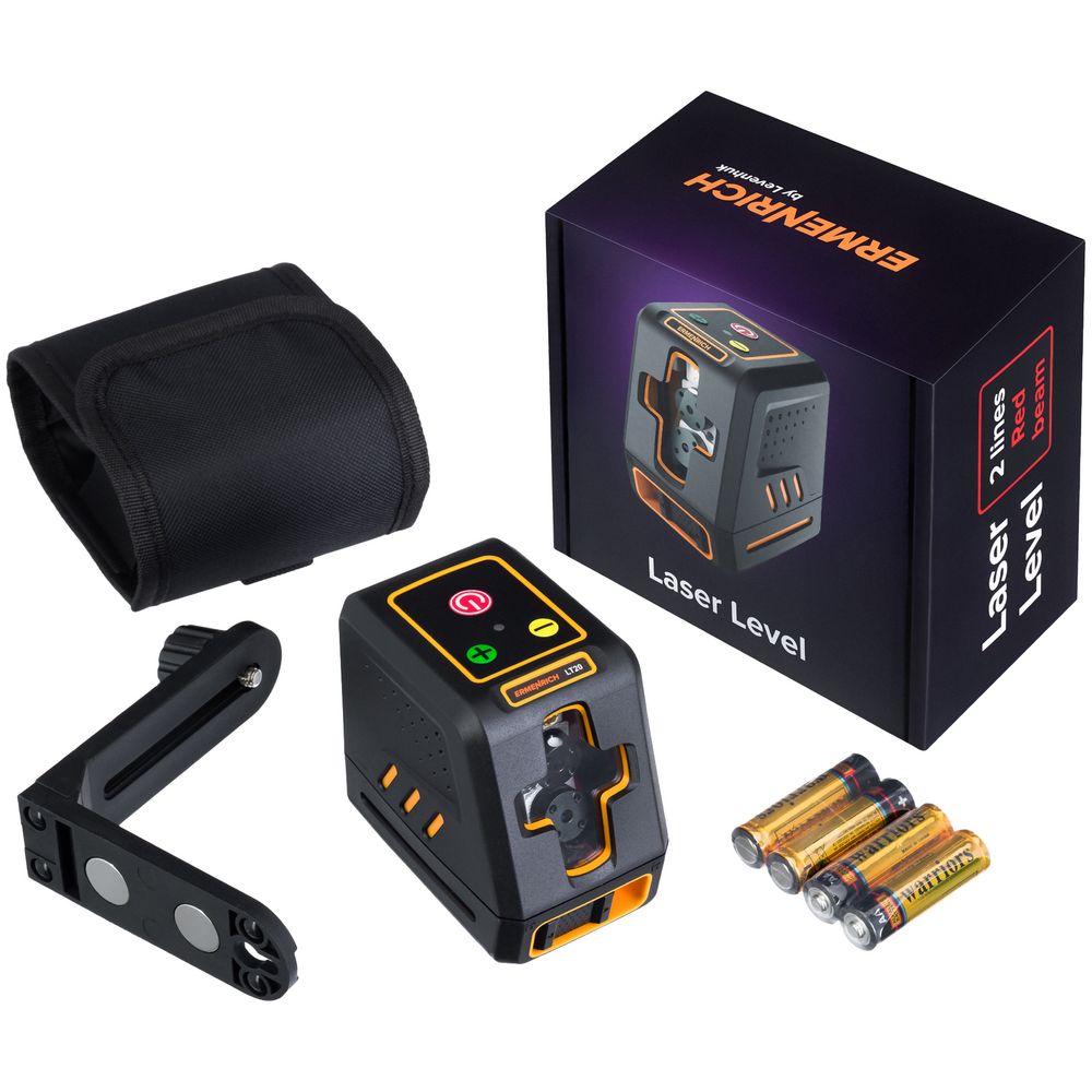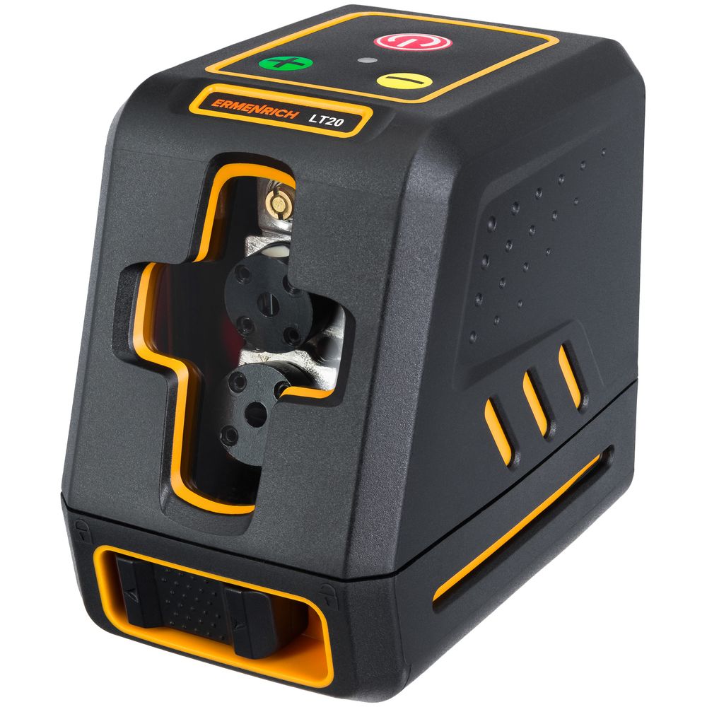 Корпус уровня Ermenrich LT20 снабжен креплением для установки на штатив стандартного диаметра. При выборе штатива с наклонной платформой можно расширить диапазон работы лазера, отклоняя источник света на нужный угол и получая новую конфигурацию линий. Прибор защищен от пыли и распыления воды, что позволяет не бояться сложных условий ремонта. Питается уровень от обычных батареек, яркость можно регулировать. Даже при выборе максимальной интенсивности лазера срок работы на одной паре батареек достигает 40 часов.