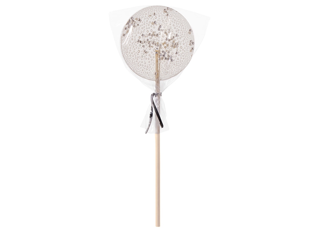 Леденец Круг прозрачный из изомальта с серебристой посыпкой, 30 гр. купить оптом и в розницу с нанесением логотипа в Нижнем Новгороде
