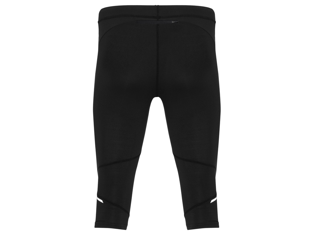 Мужские спортивные легинсы длиной три четверти. Эластичный пояс с внутренним шнурком для регулировки. Светоотражающие детали. Карман сзади на молнии.
