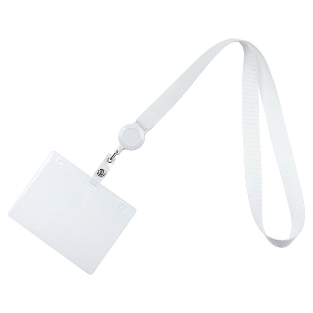 Лента для бейджа с ретрактором Retract, белая купить оптом и в розницу с нанесением логотипа в Нижнем Новгороде
