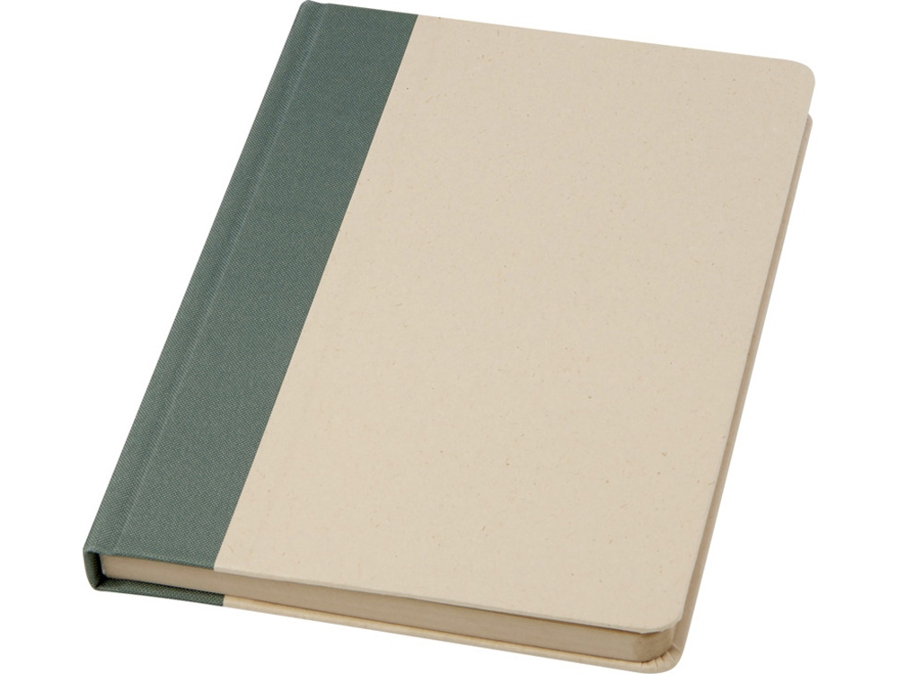 Liliana блокнот формата А5 в твердой обложке со скругленными углами и 80 линованными листами бумаги плотностью 90 г/м². Крышка изготовлена из RPET и пластика из сахарного тростника. Fruit paper.