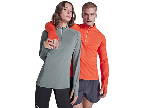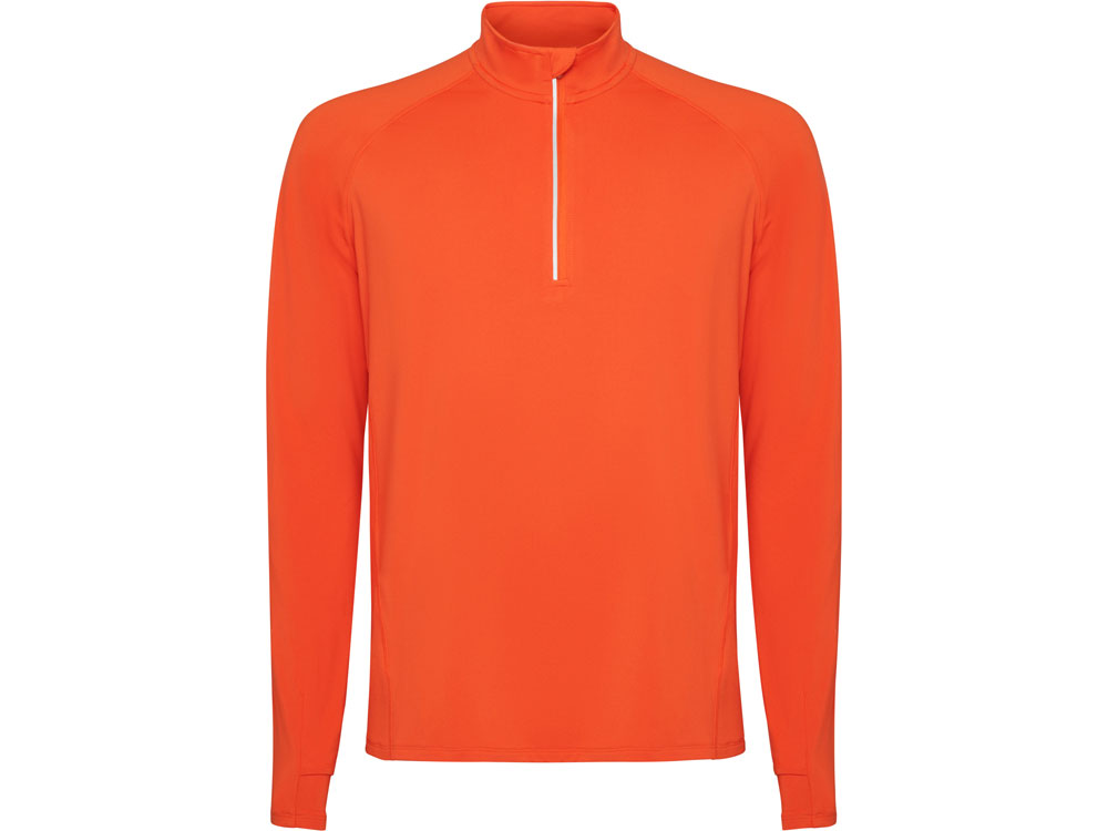 Лонгслив с рукавом реглан из технологического плотна, ворот на молнии со светоотражающей деталью. Усиленные швы. Манжеты с отверстием для большого пальца. Светоотражающая деталь на спинке. Низ спинки длиннее переда. Изнанка с теплым начесом.