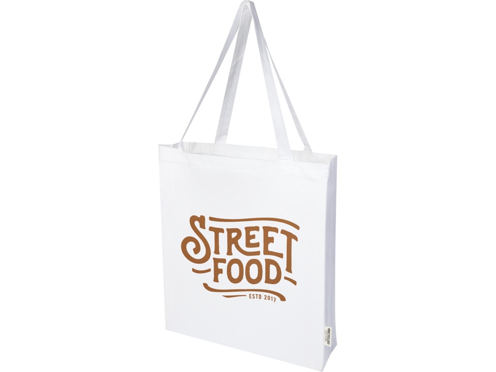 Madras эко- сумка с ластовицей из переработанного хлопка, сертифицированного согласно GRS, плотностью 140 г/м² - Белый купить оптом и в розницу с нанесением логотипа в Нижнем Новгороде