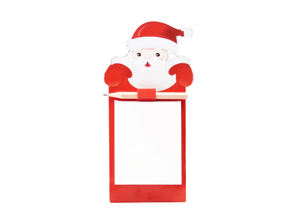 Магнит с рождественским мотивом Санта-Клауса. Включает 45 простых листов и карандаш. Магнит черного цвета.