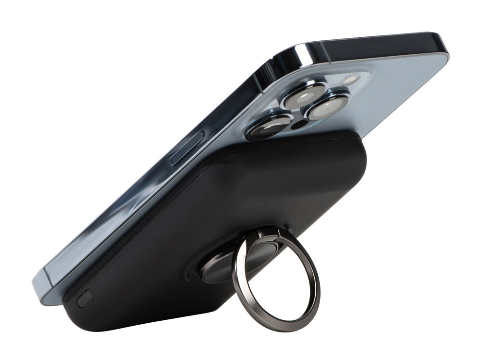 MagnetIQ надежно крепится к iPhone от 12 версии и новее при помощи сильных встроенных магнитов и заряжает по быстрой беспроводной зарядке 10 Вт. Также пауэрбэнк быстро заряжается по двойному USB-C кабелю из комплекта (при наличии USB-C сетевого адаптера мощностью от 18 Вт), и может заряжать быстро другие устройства по USB-C и USB-A портам. Внешний аккумулятор имеет встроенный металлический держатель-подставку на задней стороне, благодаря чему удобно держать заряжаемый смартфон в руках или устанавливать смартфон на рабочем столе. В комплекте есть металлическое кольцо для беспроводной зарядки смартфонов без встроенных магнитов. В базовой комплектации - двунаправленный кабель USB-C с поддержкой быстрой зарядки и кабель для проводной зарядки прежних iPhone USB - Lightning. • быстрая зарядка 20 Вт по USB-C себя и заряжаемых устройств • сильные магниты для беспроводной зарядки iPhone по технологии MagSafe • компактный, не перекрывает камеры смартфонов • металлический держатель-подставка в форме кольца