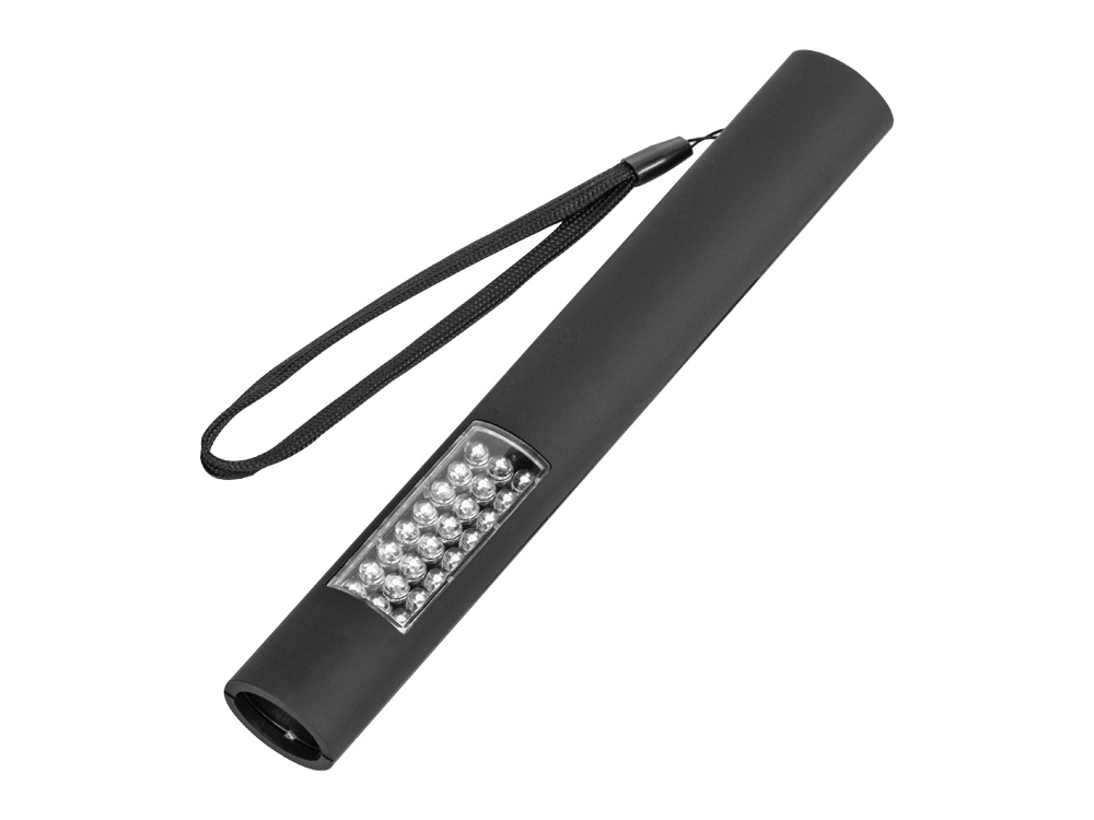 Стильный магнитный фонарик с тремя режимами. Первый режим – 4 осветительных светодиода, второй режим – 24 осветительных светодиода, третий режим – одновременное включения первых двух режимов. Магнитная задняя сторона для удобного хранения или для крепления к металлическим поверхностям во время использования. Кнопка включения/выключения. Нейлоновый ремешок для переноски.