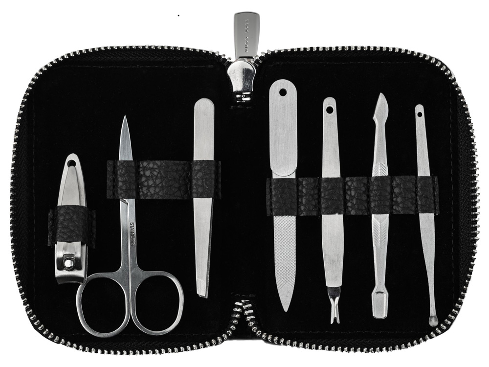 | Комплектность | пилочка для ногтей, ножницы, пинцет, ножницы для стрижки ногтей, очиститель для ушей, средство для удаления кутикул и вилка для ухода за кожей |