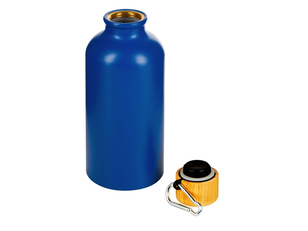 Матовая спортивная бутылка Hip S Bamboo с карабином и объемом 400 мл, синий купить оптом и в розницу с нанесением логотипа в Нижнем Новгороде