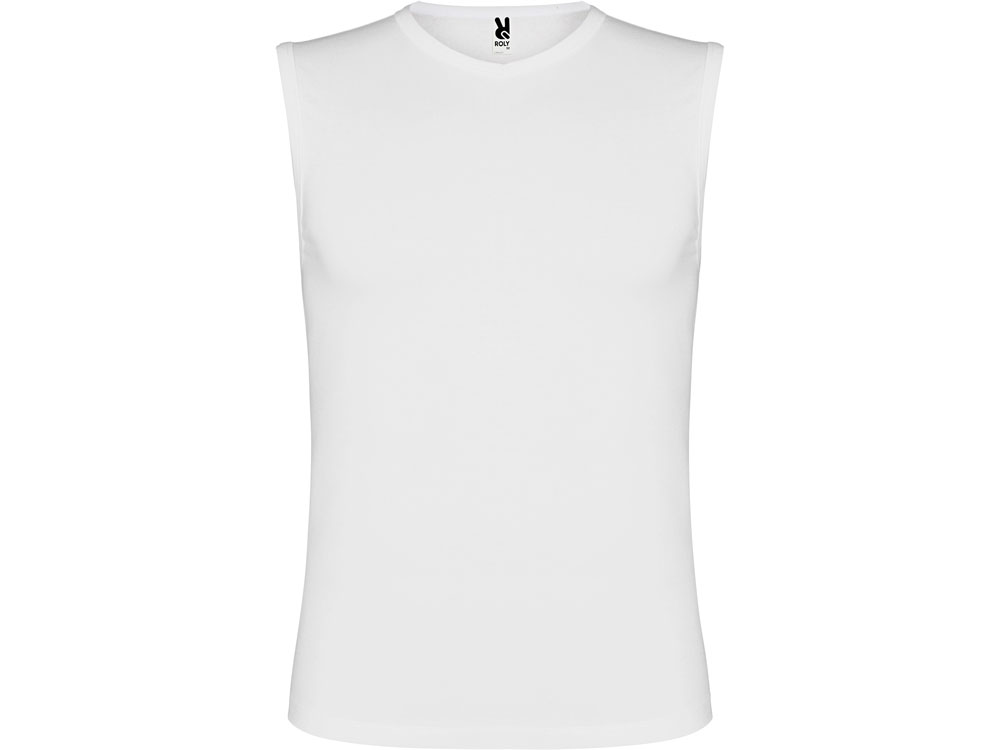 Мужская майка узкого силуэта с V-образным вырезом горловины. Отделка рибом по горловине и пройме.