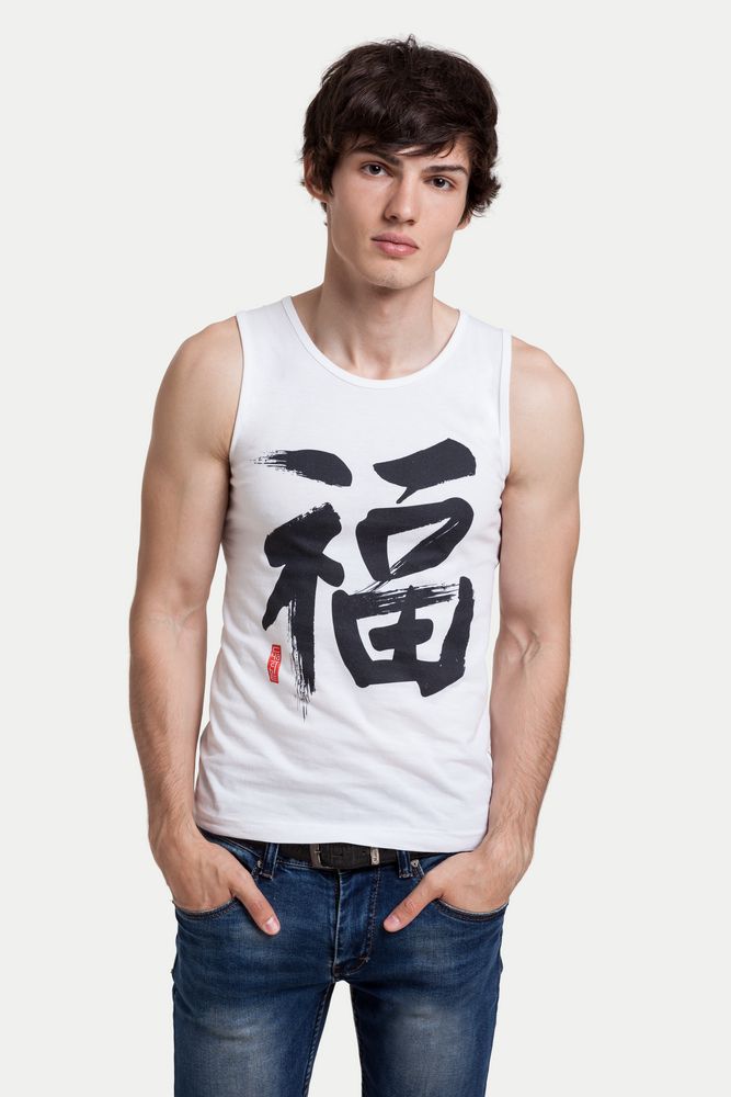 Майка мужская «Вечные ценности. Счастье», белая купить оптом и в розницу с нанесением логотипа в Нижнем Новгороде
