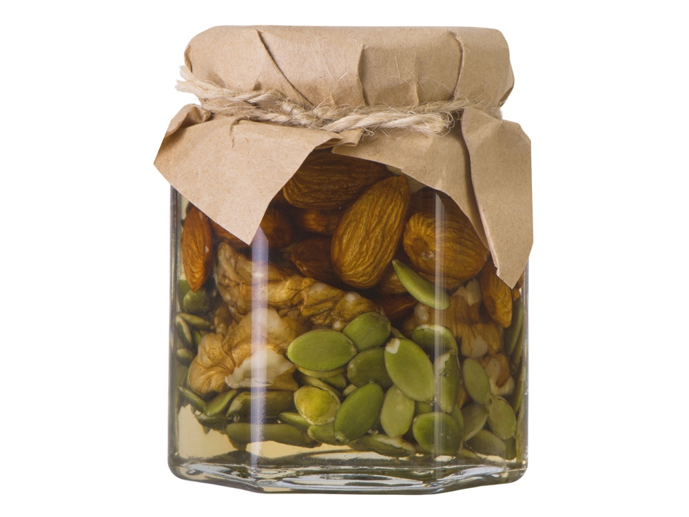 Полезный и вкусный подарок для любителей сладкого. Грецкие орехи, миндаль, кешью и тыквенные семечки в натуральном мёде станут отличным дополнением к любому чаепитию. Витамины и микроэлементы, в избытке содержащиеся в орехах и семечках, помогут поддержать иммунитет и укрепить организм. • масса нетто: 250 гр.; • красивая упаковка в стеклянную банку; • идеально к чаю.
