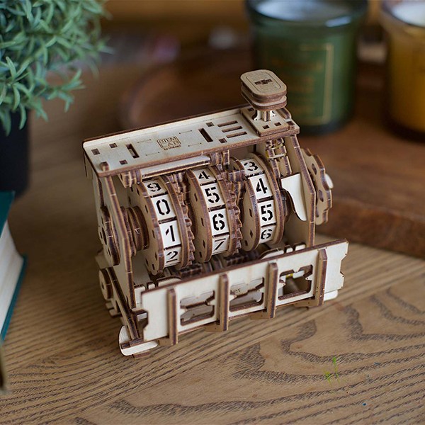 • Деревянный конструктор, из которого вы легко соберёте сам счётчик. Барабаны с цифрами, ручки для фиксации данных, кнопка-кликер, «Диск Женевы» – интерес ребёнка к процессу гарантирован уже на этапе сборки!