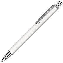 Металлическая автоматическая шариковая ручка с матовой поверхностью, металлическим зажимом, наконечником и кнопкой в сияющем серебре.