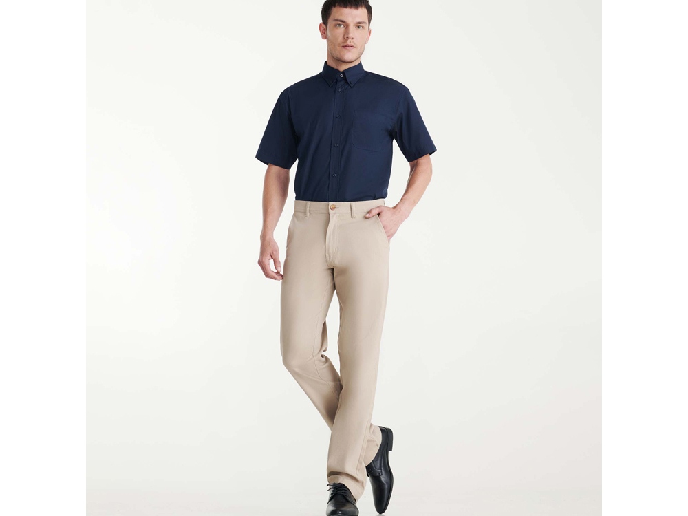 Мужские брюки из прочной и комфортной ткани. Посадка брюк специально разработана для гостиничного и ресторанного бизнеса: - два боковых скошенных кармана - два задних кармана с рамкой продублированы пуговицей - шлевки на поясе