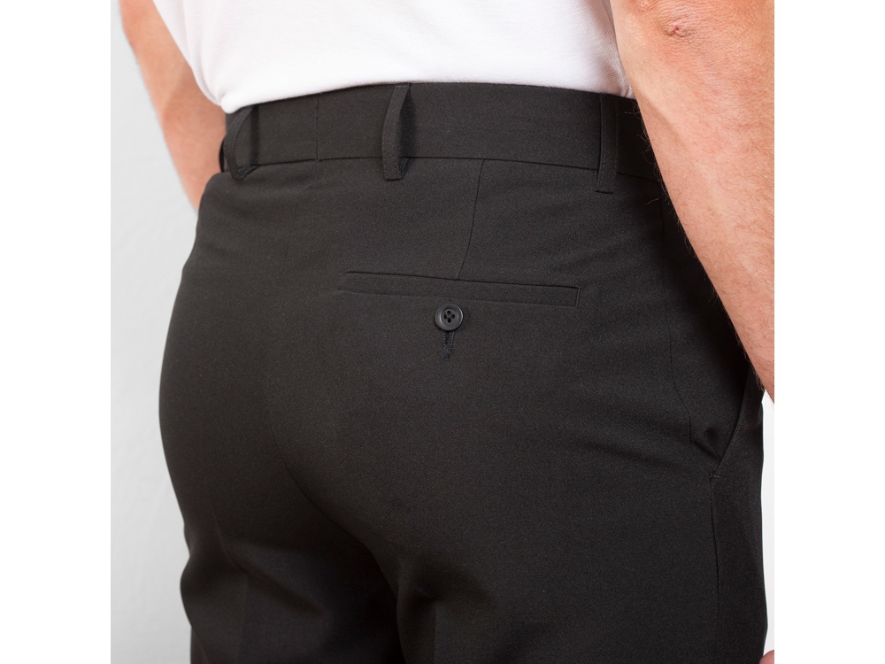 Мужские брюки специально для официантов - защипы спереди - боковые скошенные карманы -правый передний карман для мелочи - правый задний карман застегивается на пуговицу - шесть шлевок на поясе