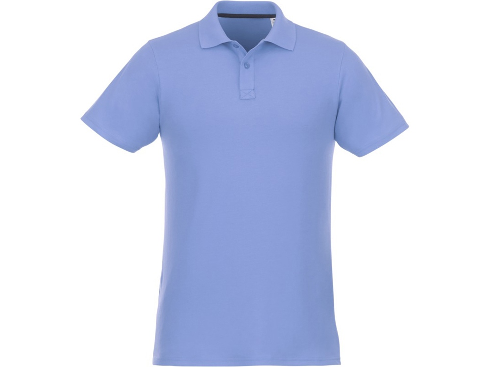 Мужское поло Helios с коротким рукавом. Отрезной-отрывной ярлык для комфорта. Воротник гладкой вязкой в рубчик. Планка с двумя пуговицами. Двойная строчка на воротнике и внизу изделия. Пуговицы в цвет изделия. Полоска на горловине в контрастном цвете. Трикотаж Piqué, 100 % хлопок. 180 г/м².