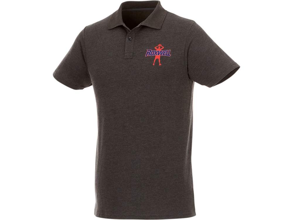 Мужское поло Helios с коротким рукавом. Отрезной-отрывной ярлык для комфорта. Воротник гладкой вязкой в рубчик. Планка с двумя пуговицами. Двойная строчка на воротнике и внизу изделия. Пуговицы в цвет изделия. Полоска на горловине в контрастном цвете. Трикотаж Piqué, 60% хлопок, 40% полиэстер. 180 г/м².