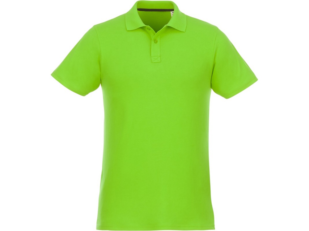 Мужское поло Helios с коротким рукавом. Отрезной-отрывной ярлык для комфорта. Воротник гладкой вязкой в рубчик. Планка с двумя пуговицами. Двойная строчка на воротнике и внизу изделия. Пуговицы в цвет изделия. Полоска на горловине в контрастном цвете. Трикотаж Piqué, 100 % хлопок. 180 г/м².