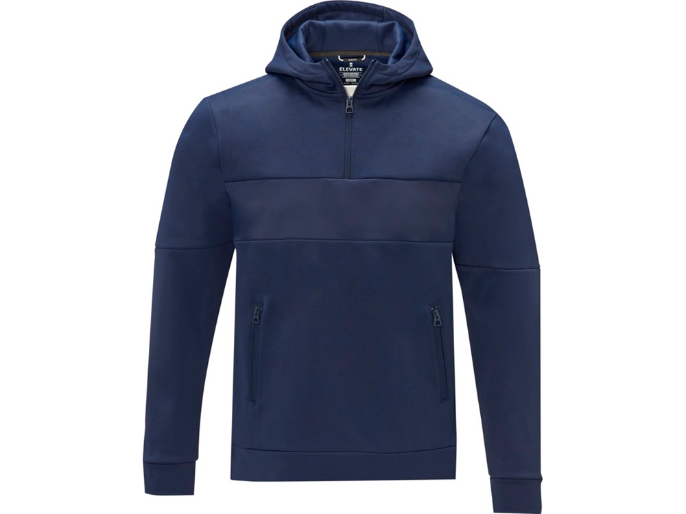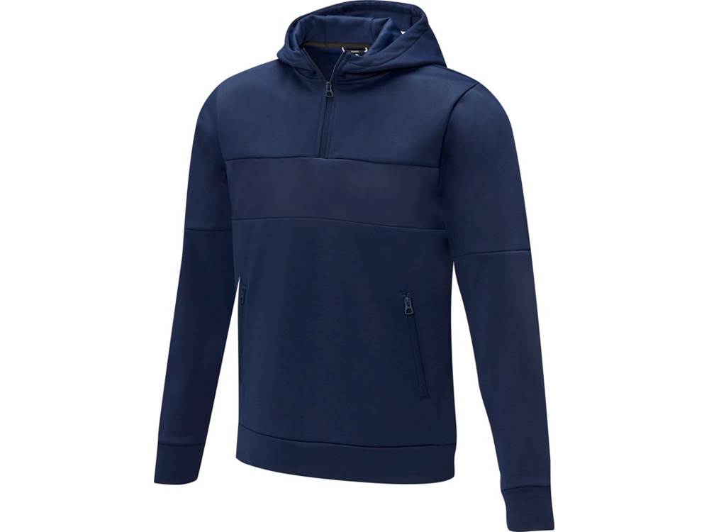 Мужской свитер анорак Sayan на молнии на половину длины с капюшоном, темно-синий купить оптом и в розницу с нанесением логотипа в Нижнем Новгороде