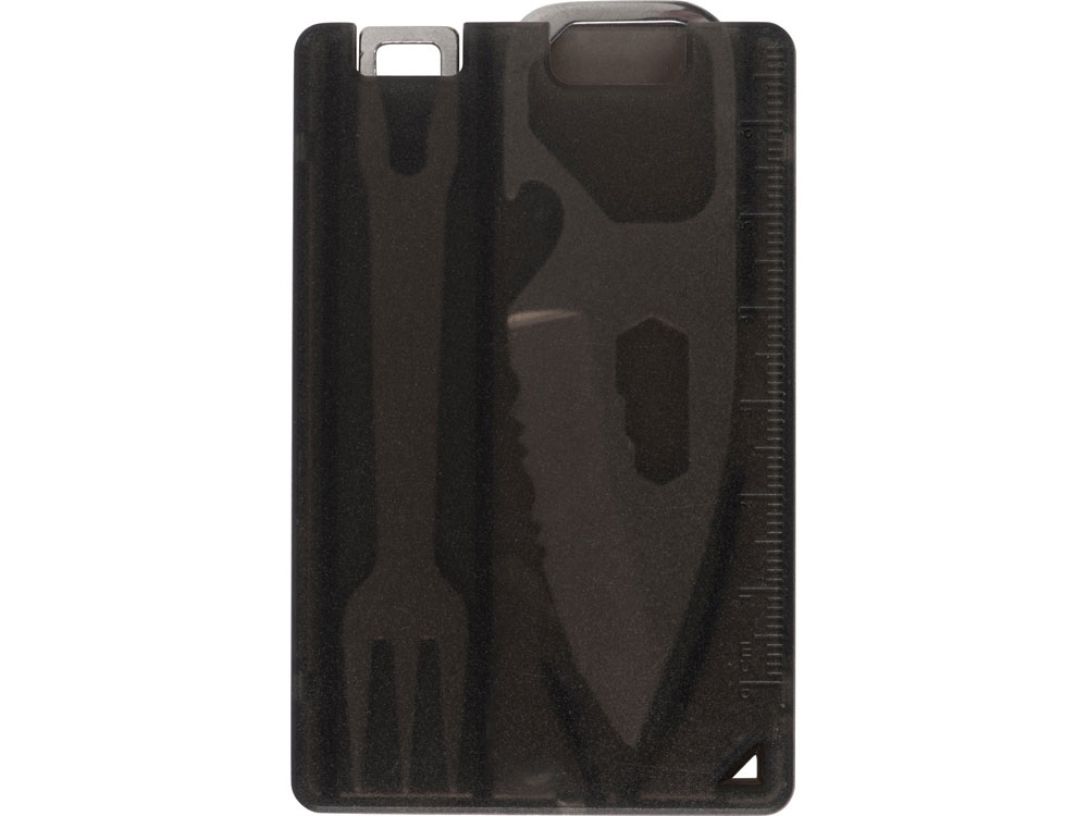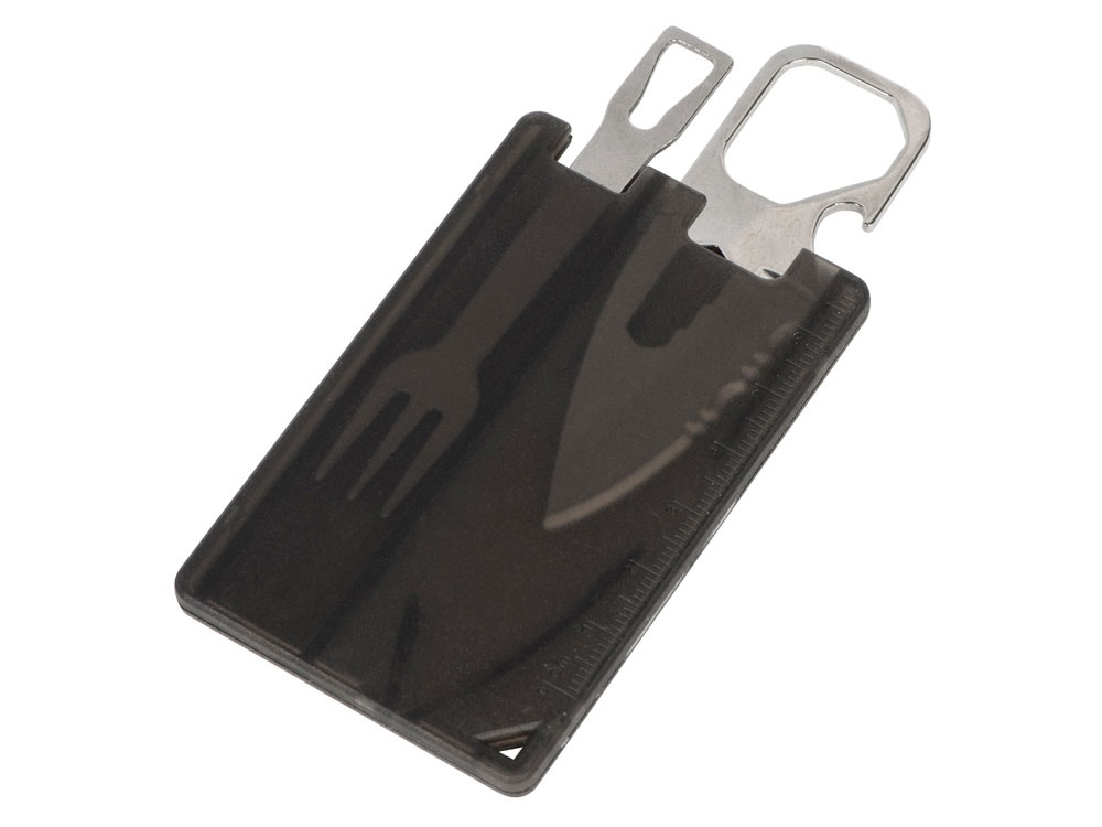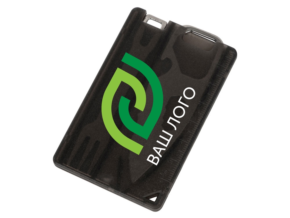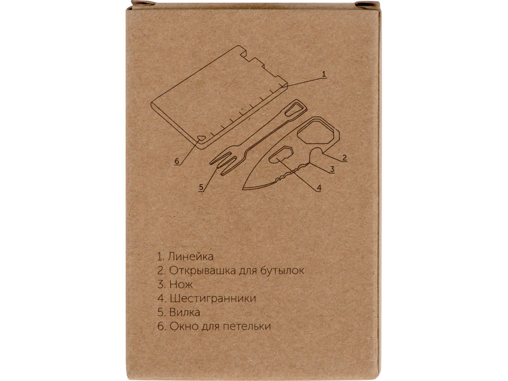 Компактный мультитул в форме карты. - Линейка - Открывашка для бутылок - Нож - Шестигранники - Вилка - Окно для петельки